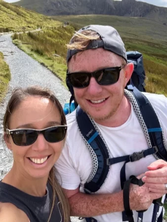 Hollie and Tom Stephens climbing Snowden as part of his training