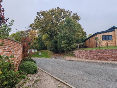 Walk past the trees and through the kissing gate in the hedgerow beyond. Turn left on Rhyn Lane (2) and walk along the lane for about half a mile.