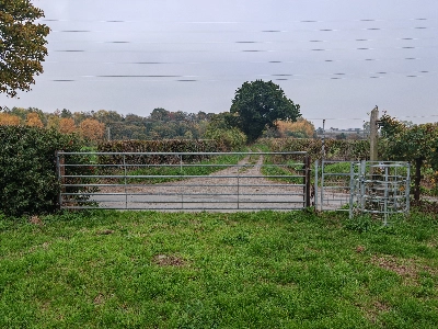 Head diagonally right towards the far hedgeline. You’ll see a gap ahead of you. The stile that filled this gap has collapsed completely, and you’ll have to duck under a piece of wood someone has nailed across where the stile was (5). To make matters worse, there is a strand of electric fence directly after the gap.