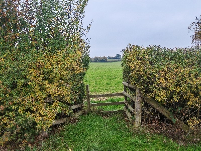 If you fancy another mile and a half, cross over the road and turn right. Walk down the road towards the houses on the left. Turn left up the narrow path just before the first house. Turn right onto the canal towpath and walk for about 10 minutes until you reach Monk’s Bridge on Canal View (see feature image). Cross the bridge and take your first left after about 4 minutes onto Oaklands Road. Turn right immediately through the wooden gate with “Rotarian Roger Hudson” carved into it and onto the public footpath. Walk along the path across the meadow and past the wooden post with the yellow waymarker arrow.