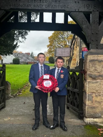Ysgol Rhiwabon were also proud to attend the Cefn Mawr Remembrance Service. Mrs V Wright-Davies accompanied Holly Jones (Y8), who read the poem ‘Stepping Stones’. Tomos Richards and Skyler Smith (both Y7) laid a wreath on behalf of Ysgol Rhiwabon to remember the fallen.