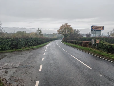 Cross over and turn right, heading towards the “Lightwood Green ¼” signpost in about 100 yards (7).