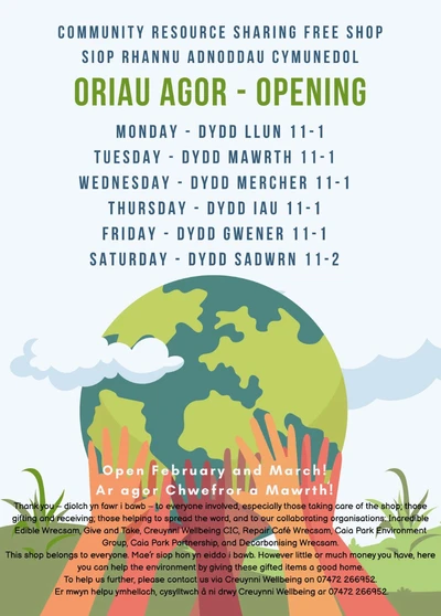 Incredible Edible Wrecsam has launched a new Free Shop at the Hub in the Caia Park Partnership. The group is working with several local community organisations to promote the Sharing Economy. As a result, more residents can reuse everyday items instead of throwing them away.