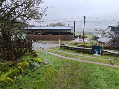 You’ll see another path slightly above you to the right, which looks like it has some wooden boarded sections for cyclists. Turn left just after you pass the farm buildings on the left (12) and retrace your steps down the slope back to where you parked.