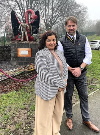 During her visit, Pooja also saw the Knife Dragon sculpture on site, created from decommissioned weapons collected by North Wales Police. The artwork, known as ‘JohnFree’, was developed with Wrexham County Borough Council. It stands as a reminder of the impact of knife crime and the importance of education in prevention.